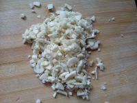 3.将蒜碎放入肉片中,加入一包烤肉酱拌匀。
