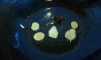 4.4.起油锅,把八角,桂皮,姜片放入煸香,注意是小火煸,大火容易把八角,桂皮炒糊了哦。
