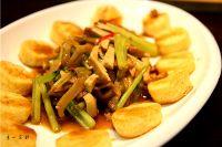 7.香干煸炒成熟后,加入榨菜丝继续煸炒,将两种食材咸鲜香辣互相融合,最后放入芹菜。