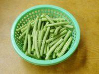 2.豆角洗净,把两头和豆荚去掉,用手掰成段,洗净捞出沥干水;