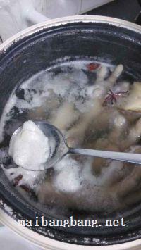 7.打开盖子,小火,煮30分钟。一定要调小火,火大了鸡爪容易皮开肉绽,影响美观,煮熟的鸡爪,不要捞出,浸泡入味。